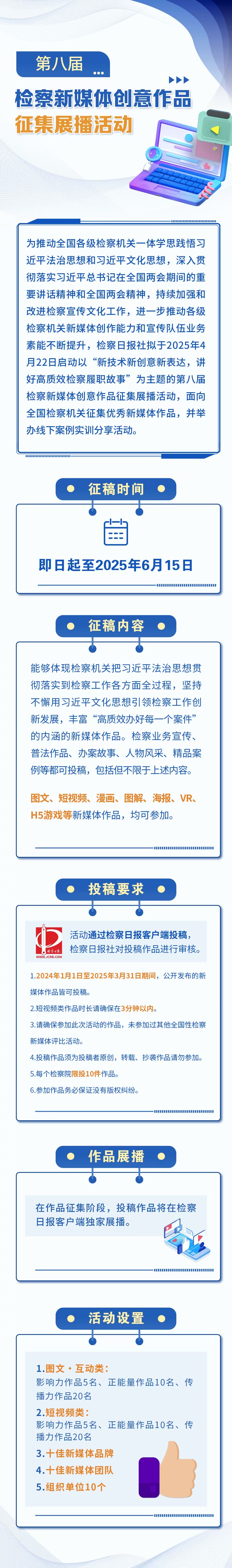 4.大赛获奖作品知识产权归参赛者所有,所有参赛作品均可在正义网及最高检新媒体平台上发布,检察日报社有权使用传播参赛作品。